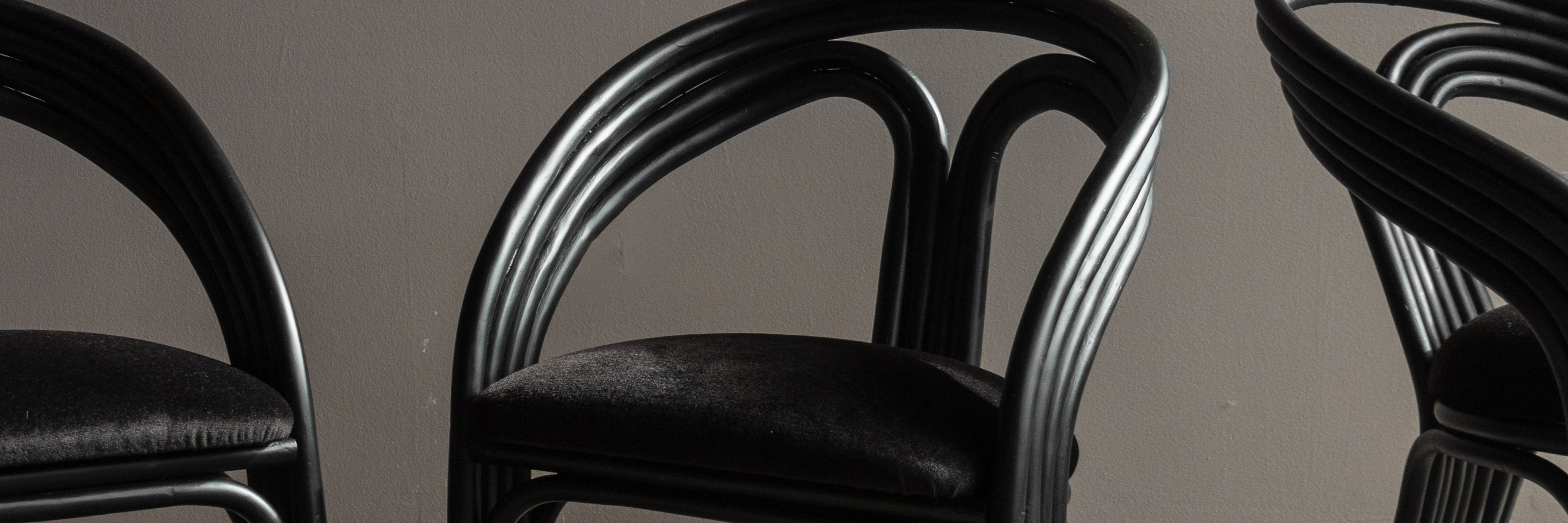 Postmodern Black Persian Lamb Boucle Dining Chairs