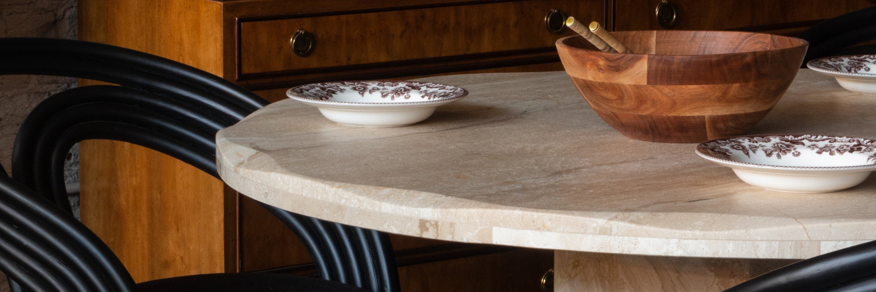 1980s Postmodern Vintage Travertine Round Dining/Entry Table Honed
