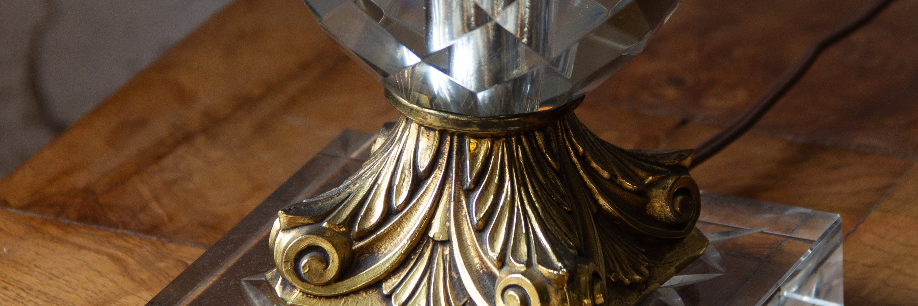 1960s Italian Lead Crystal Brass Lamps - a Pair