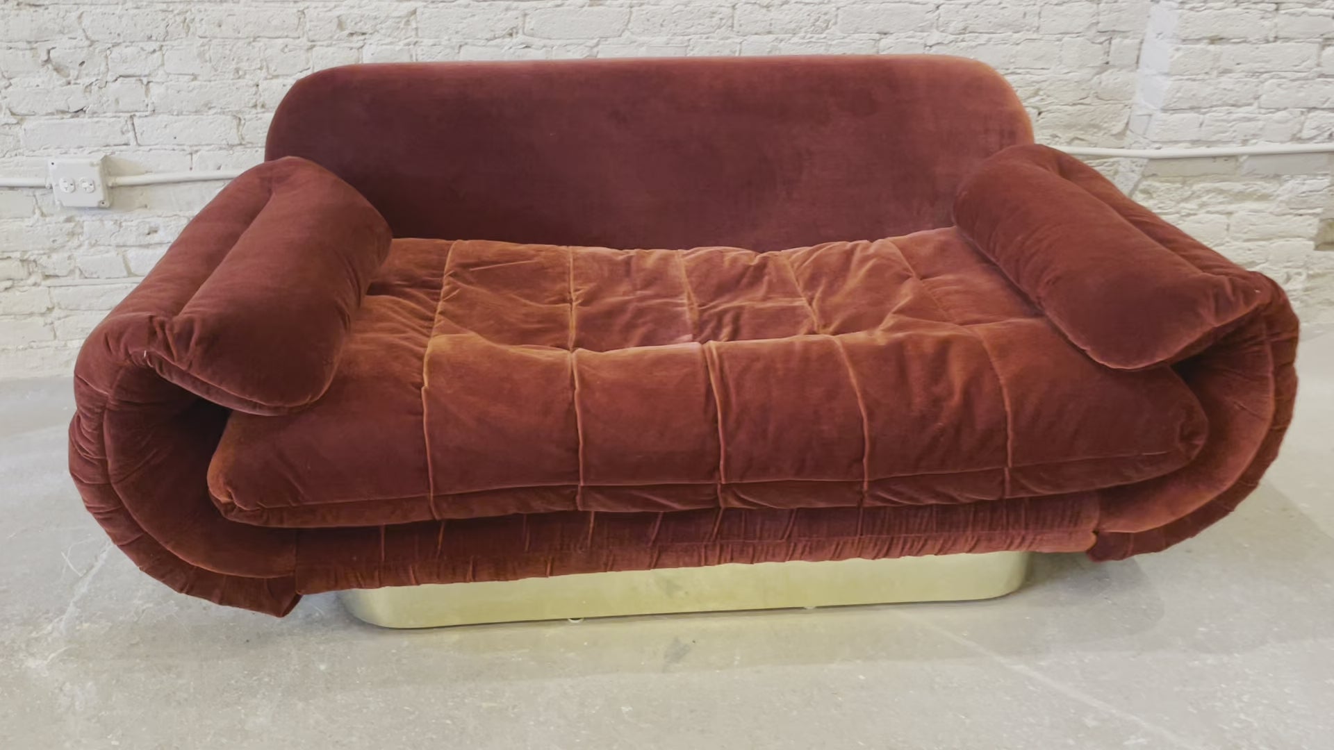 1970s Sofa With Curved Arm and Brass Plinth Base