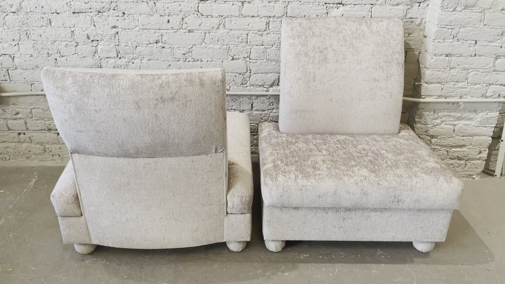 I loved the lines of these chairs but the fabric was not so pretty. Got my favorite oyster two toned velvet upholstery fabric (which is practical for family life) and some new round feet - voila.