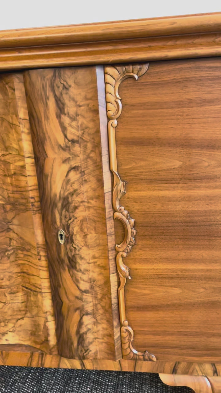 1910/1920s Antique Vintage Burled Wood Art Deco German Sideboard Credenza Large