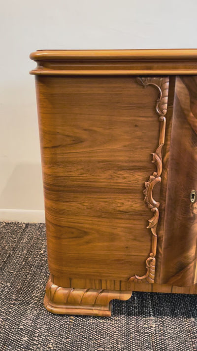 1910/1920s Antique Vintage Burled Wood Art Deco German Sideboard Credenza Small