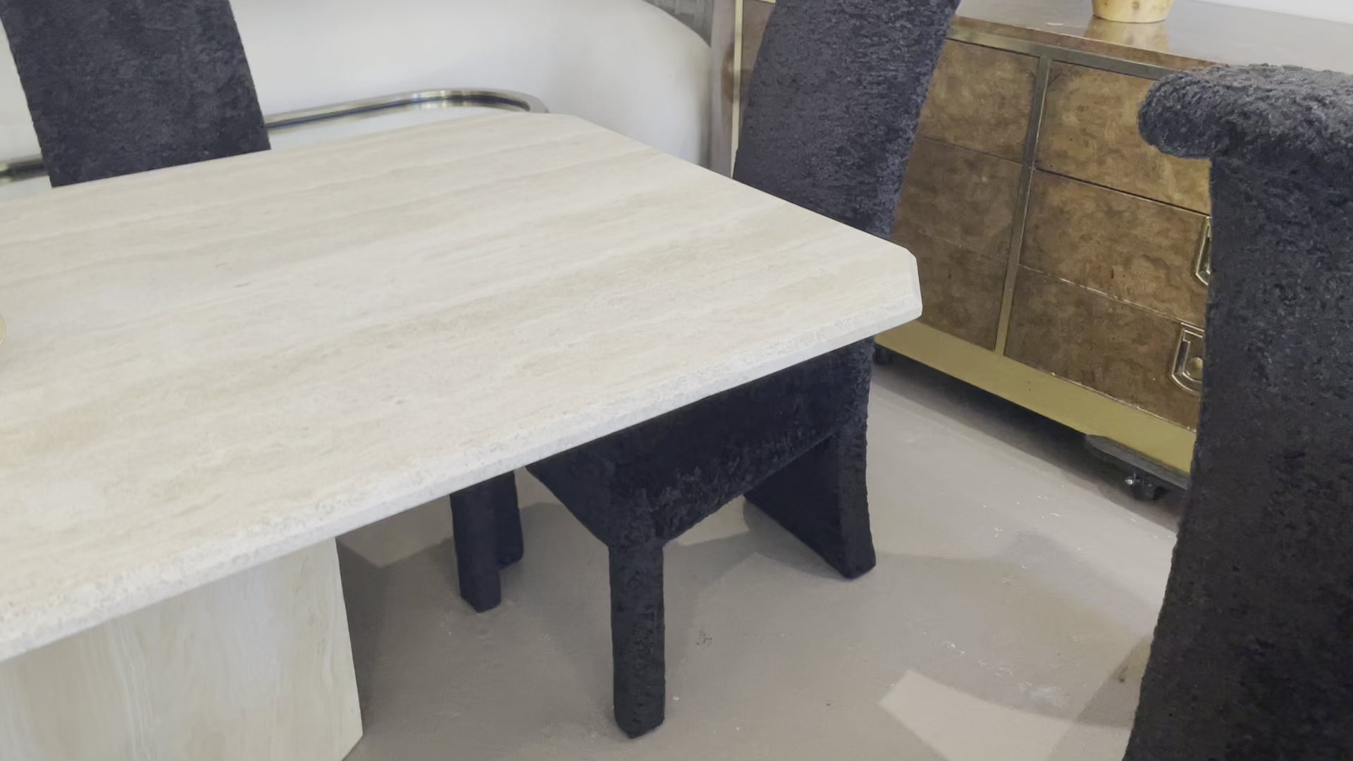 1970s Postmodern Travertine Dining Table With Angled Edge Top and Base