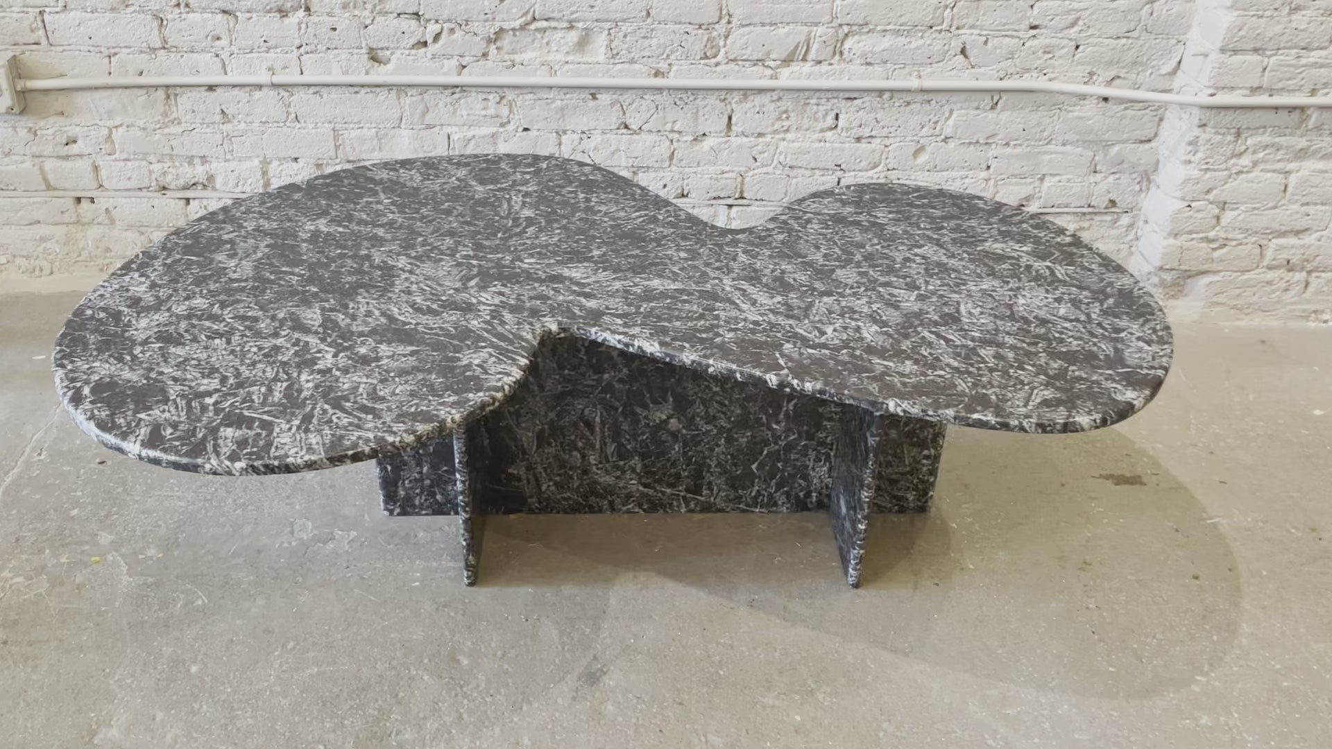1970s Vintage Custom Made Black and White Marble Coffee Table Nero Marquina