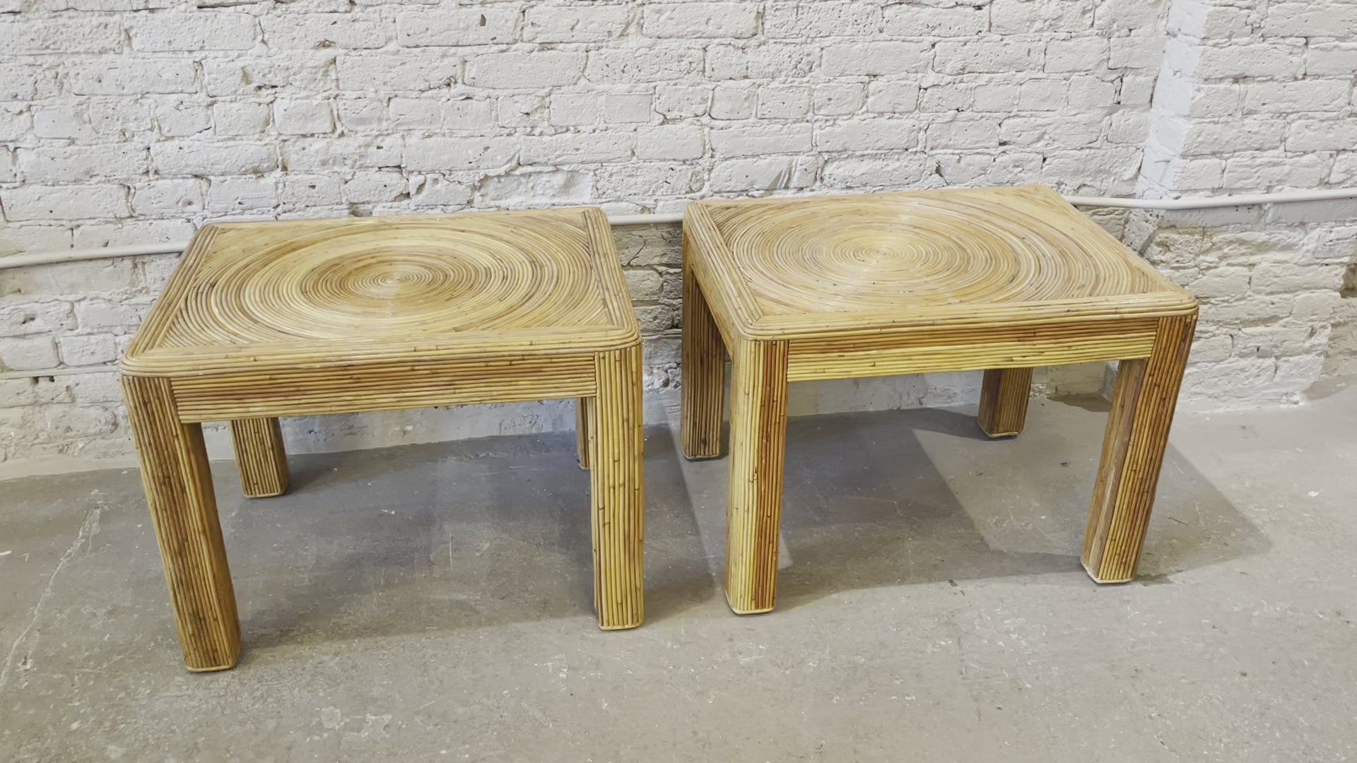 1970s Vintage Pencil Reed Rattan Bamboo Side Tables