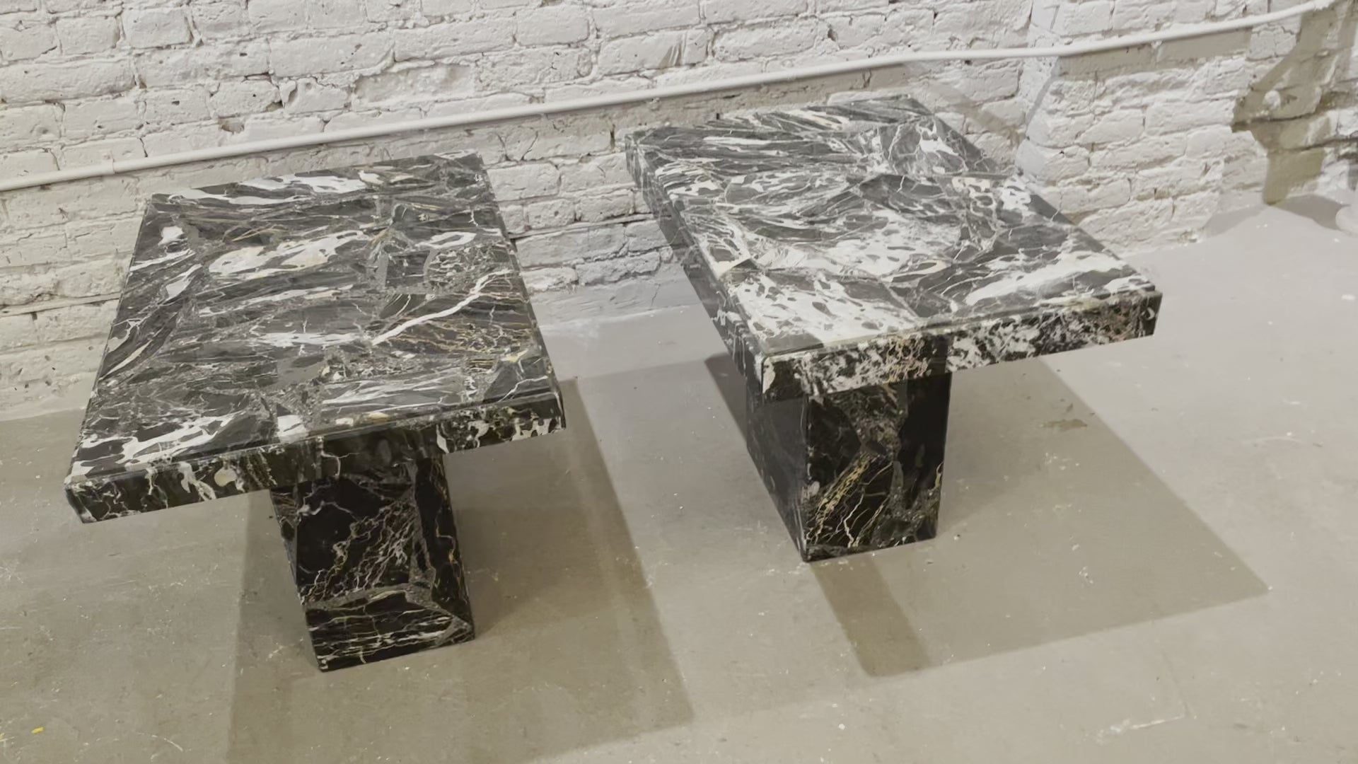 1980s Nero Portoro Marble Vintage Side Tables - a Pair