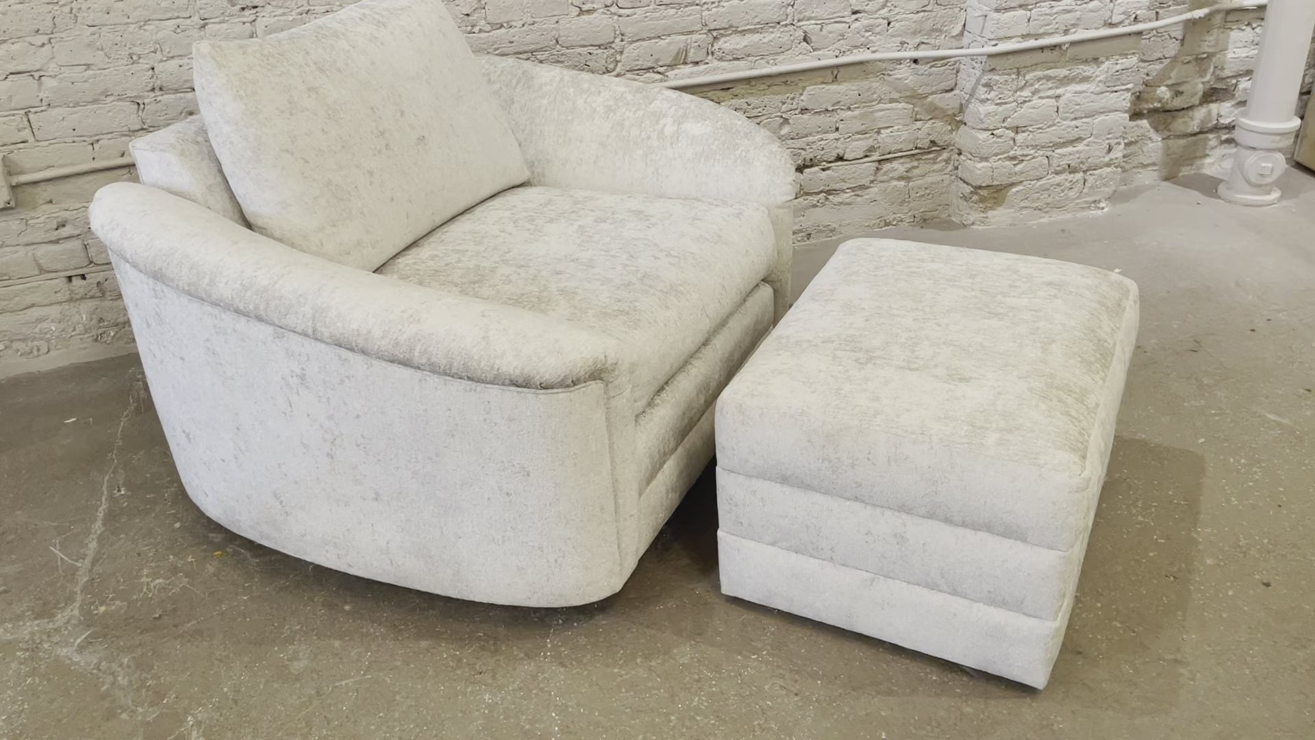1980s Oversized Postmodern Swivel Chair and Ottoman Reupholstered