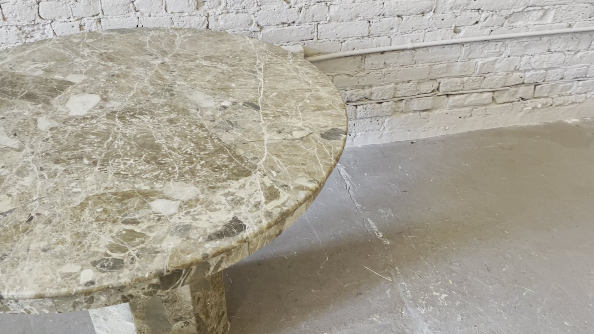 Gorgeous marble small dining or entry table. I had the lacquer professionally removed to create this understated honed finish.