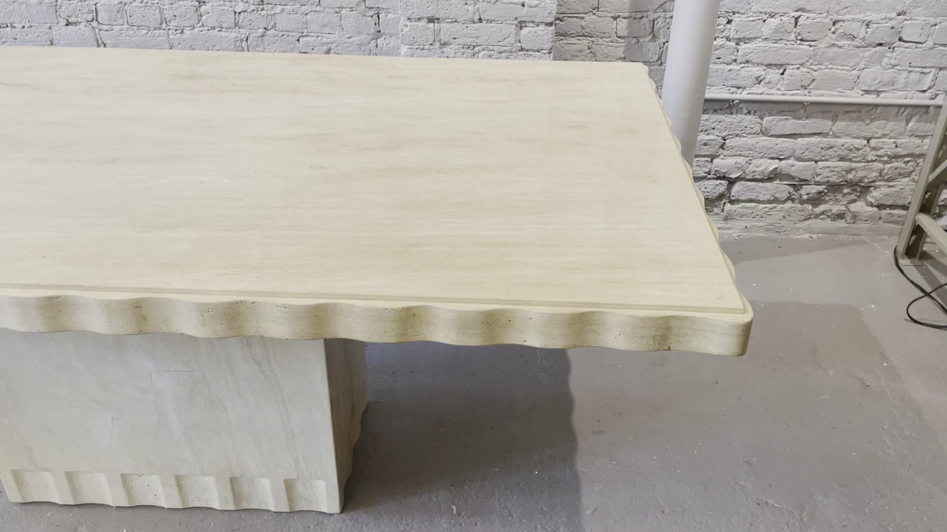 1980s Scalloped Edge Travertine Postmodern Vintage Dining Table