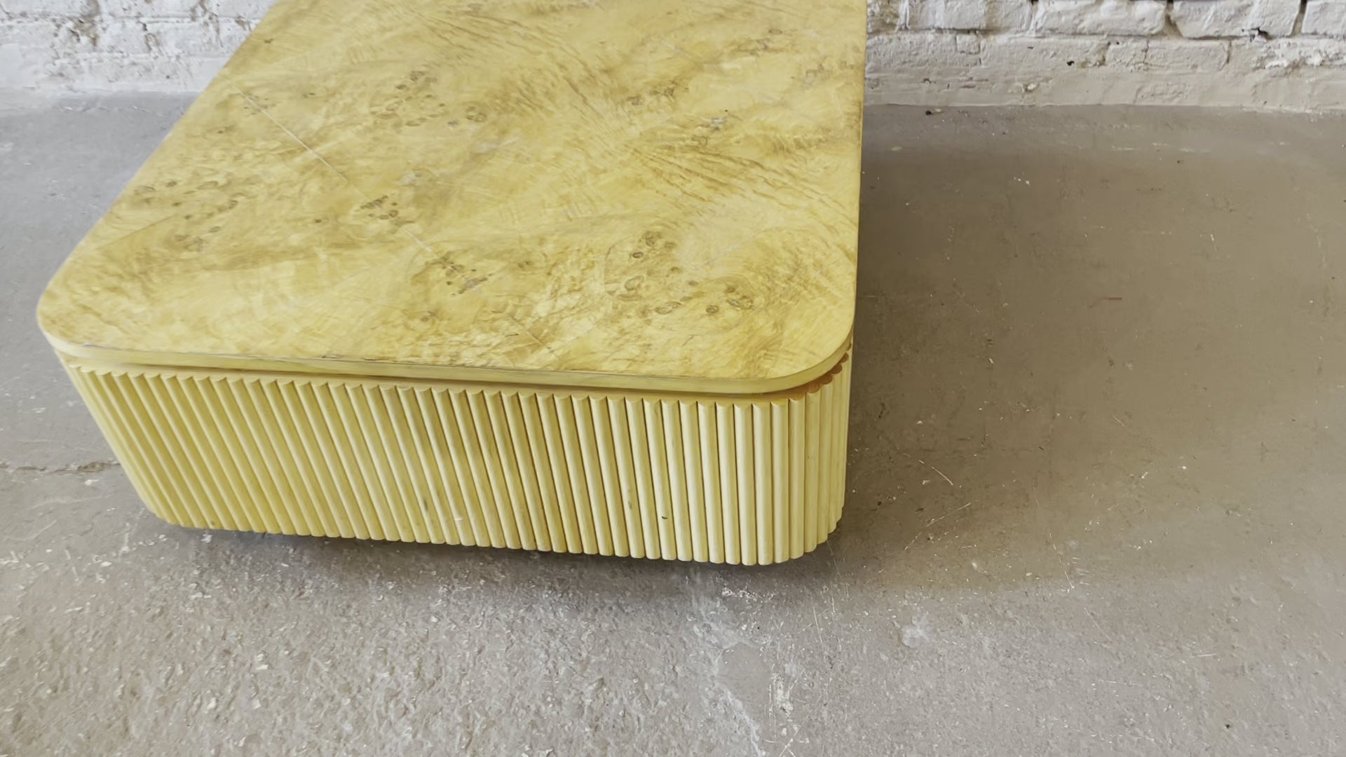 1980s Vintage Custom Made Bamboo and Burled Wood Coffee Table
