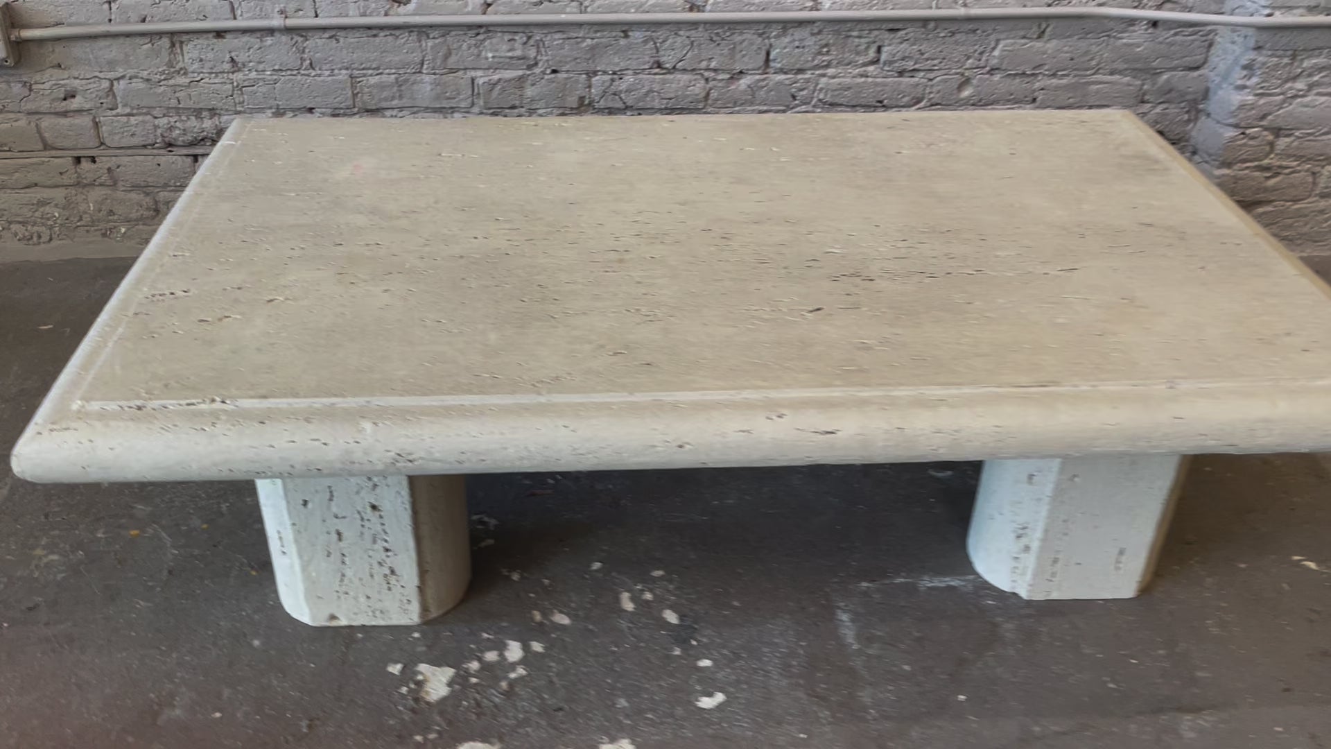 Lovely coffee unfilled travertine coffee table with 4 oval legs which fit into slots on the top for total securement.